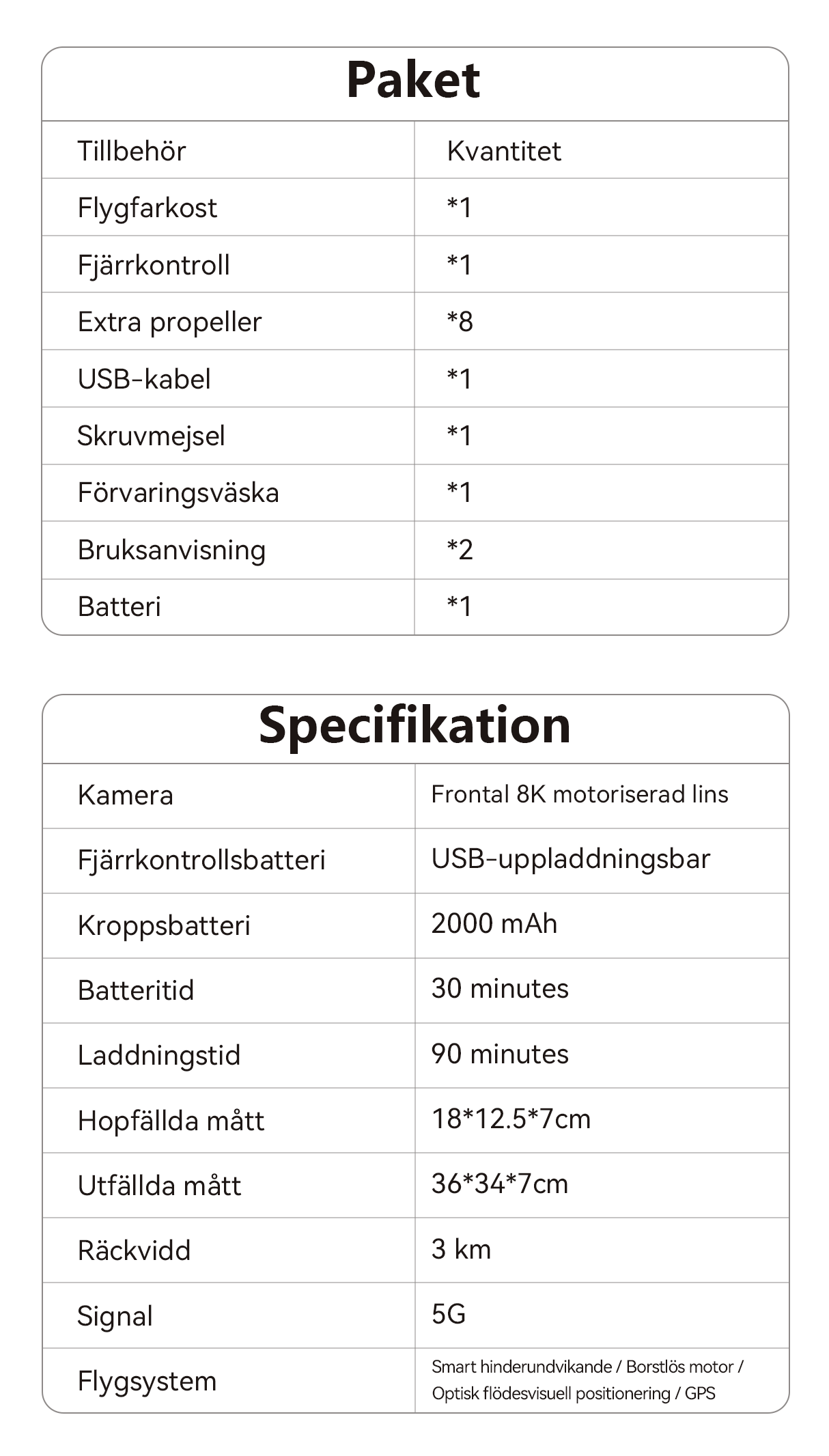 - 30 Minuters Lång Batteritid – Utökad flygtid för mer filmande och mindre laddning.