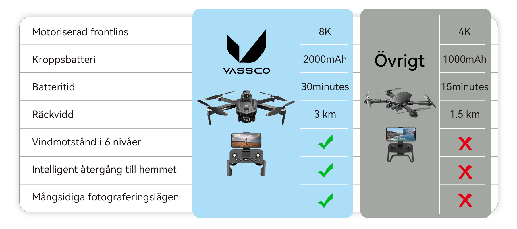 Vassco GPS-Drönare Med Kamera – Flyg högre, fånga varje ögonblick med klarhet och precision.