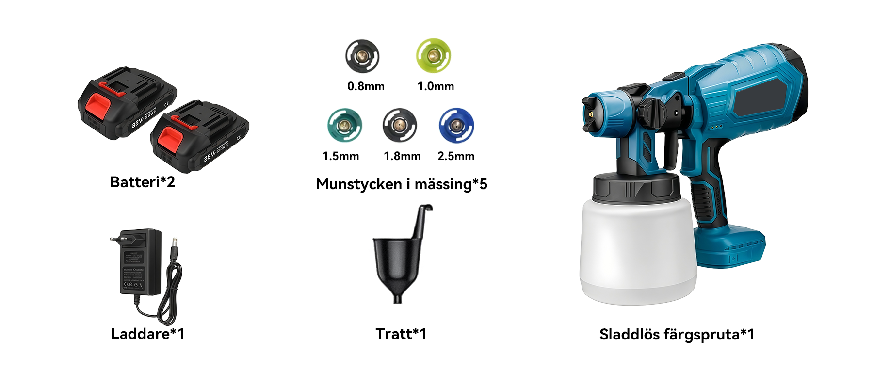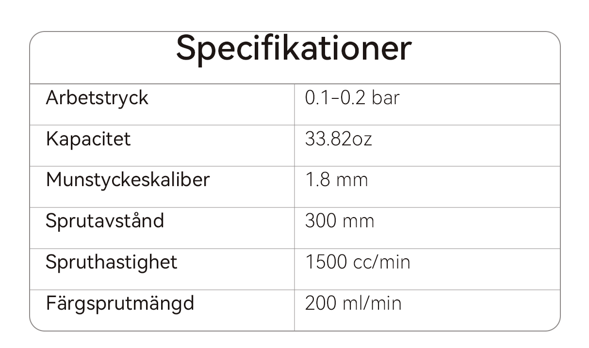 - Precist & Effektivt: Justera flödet för en perfekt finish och mindre färgspill.