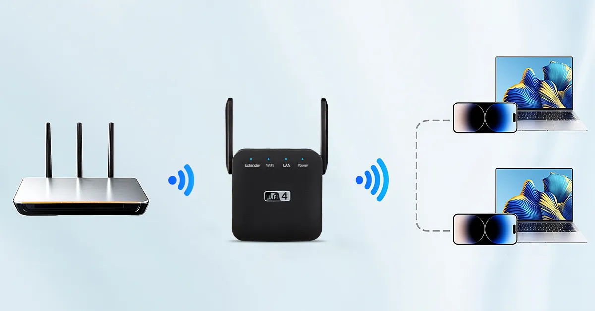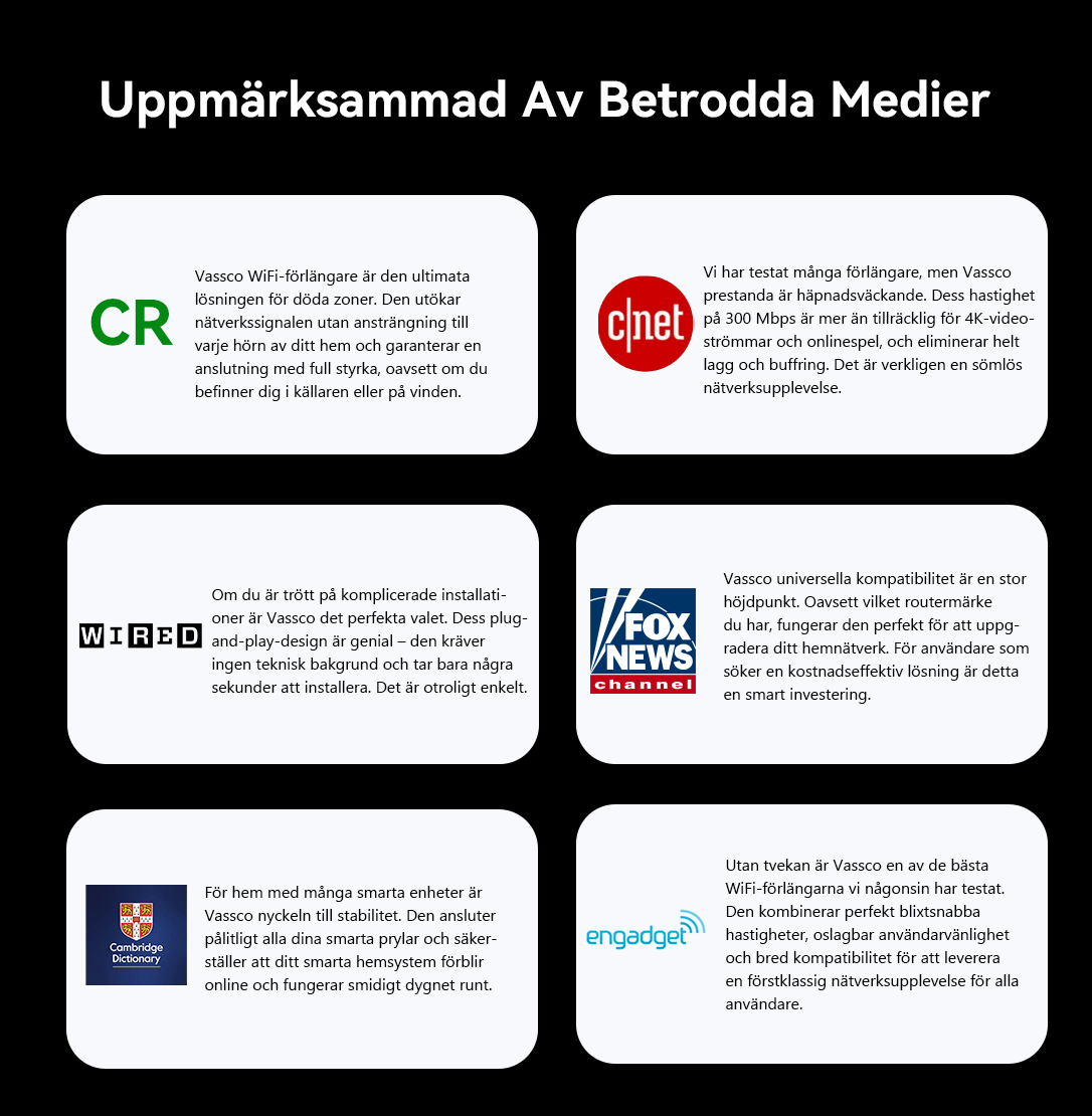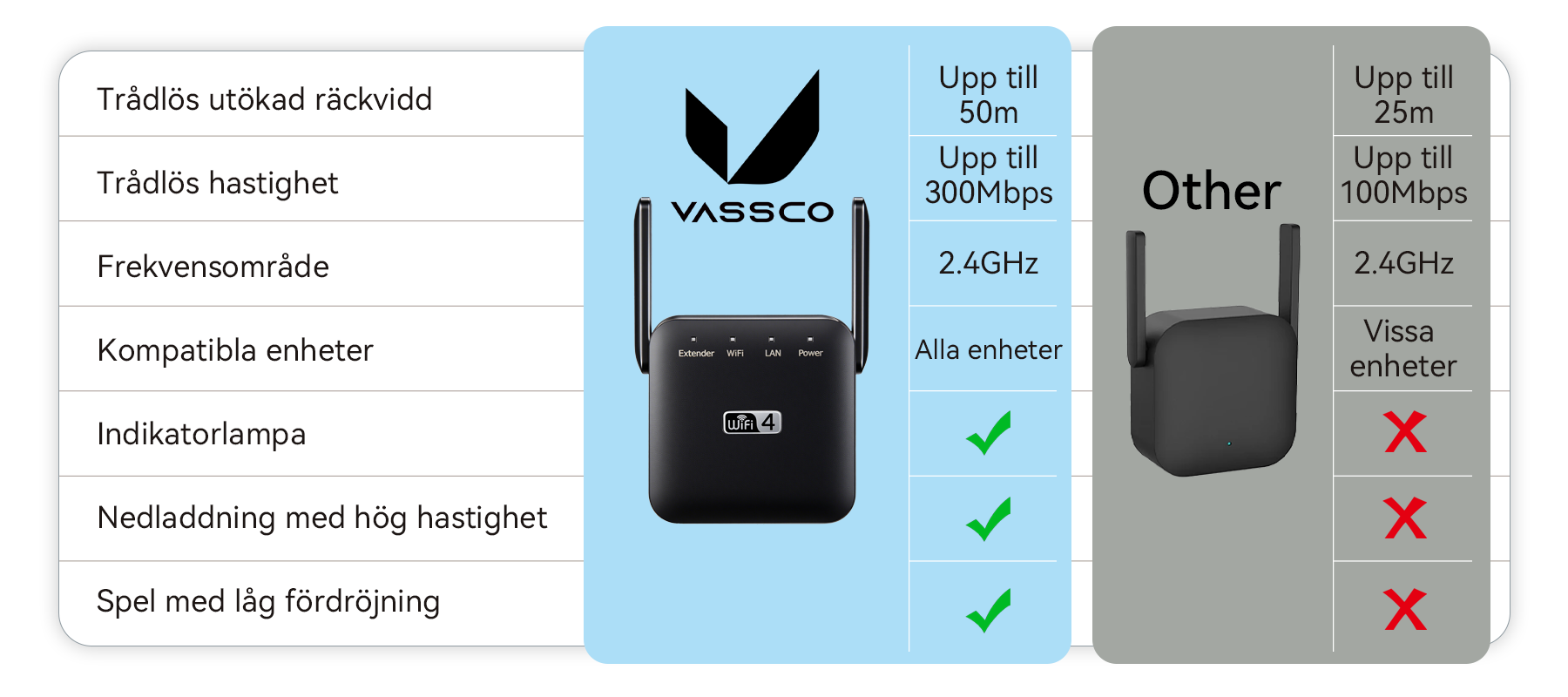 Vassco WiFi Extender - Ger blixtsnabb, sömlös täckning till hemmets alla hörn. Streama, arbeta och spela utan lagg.