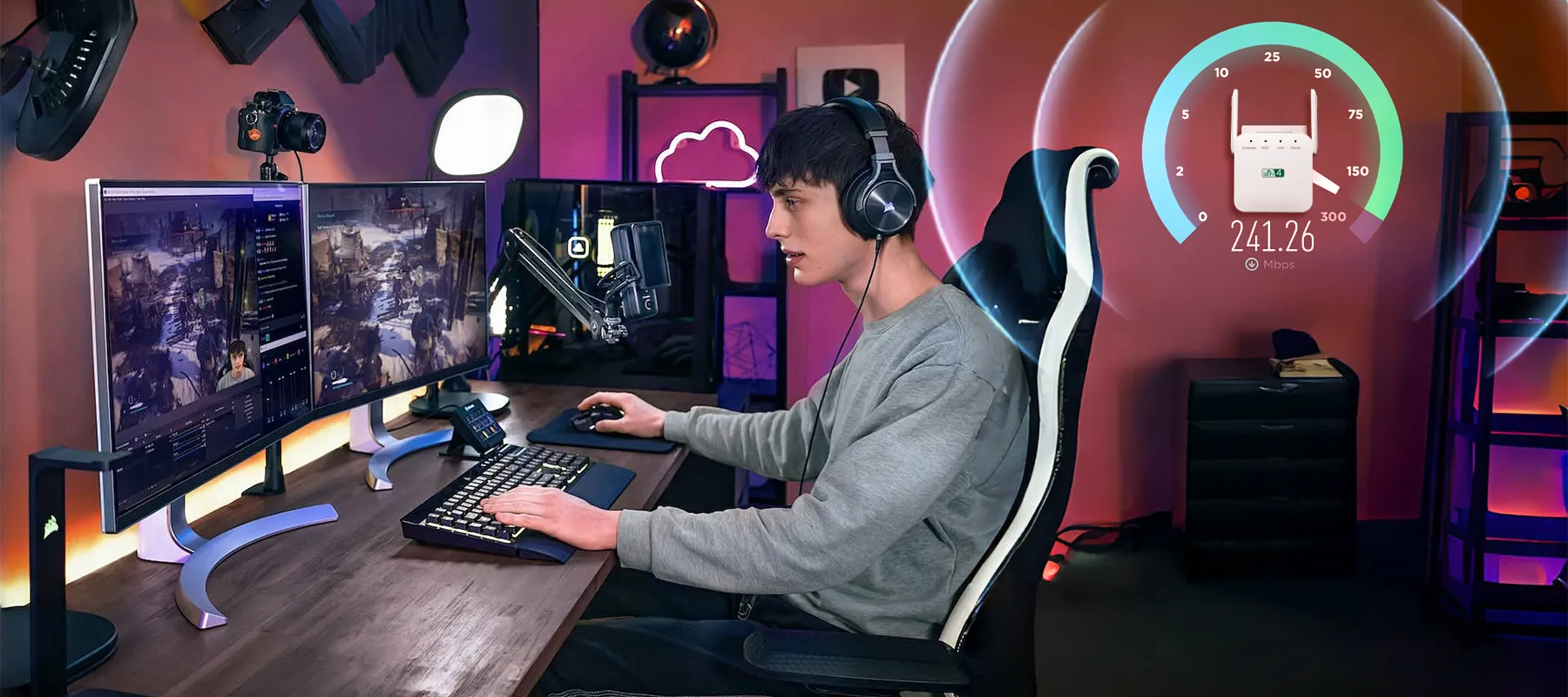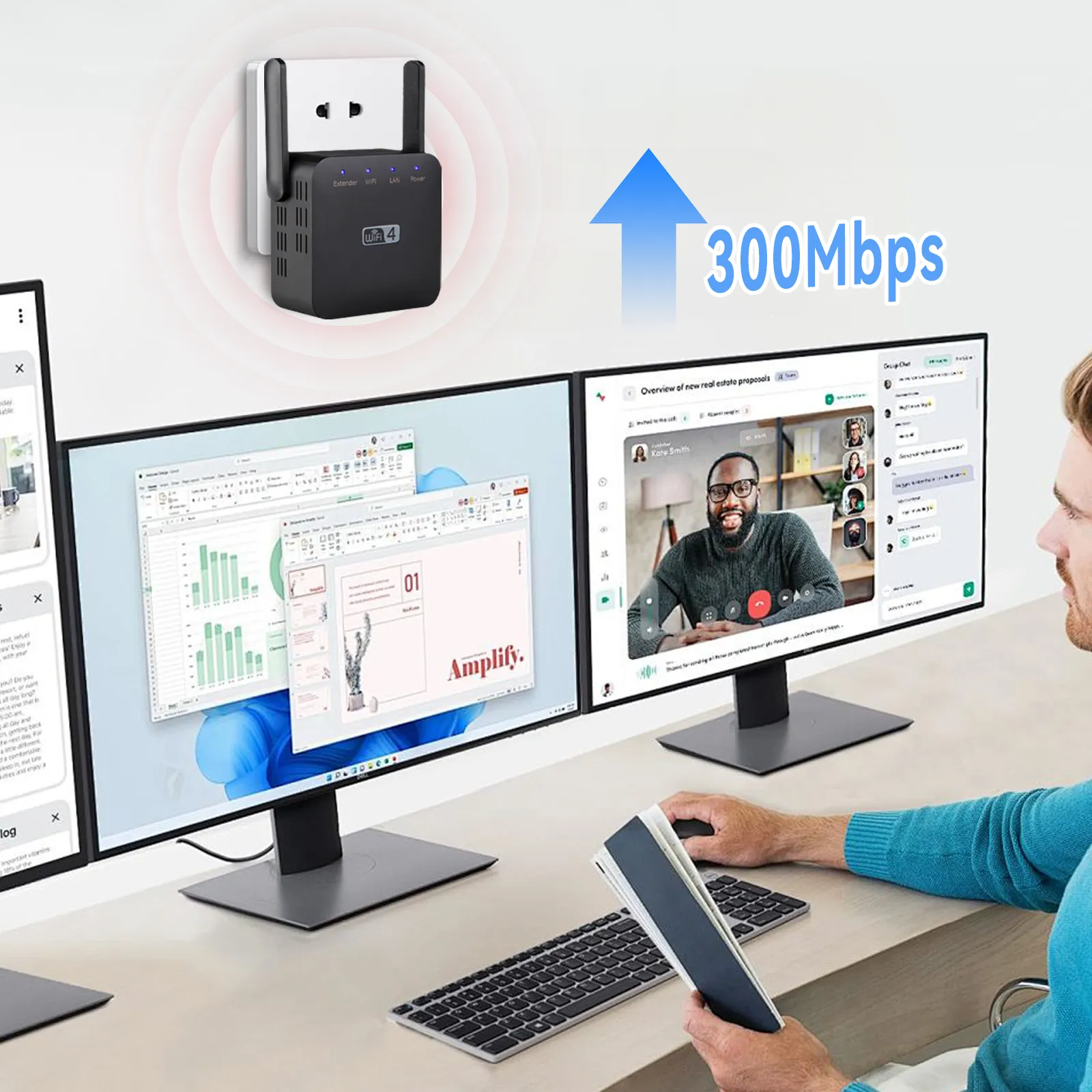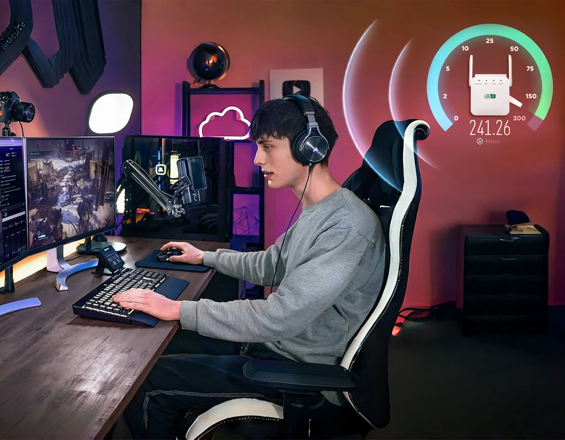Vassco WiFi Extender - Ger blixtsnabb, sömlös täckning till hemmets alla hörn. Streama, arbeta och spela utan lagg.