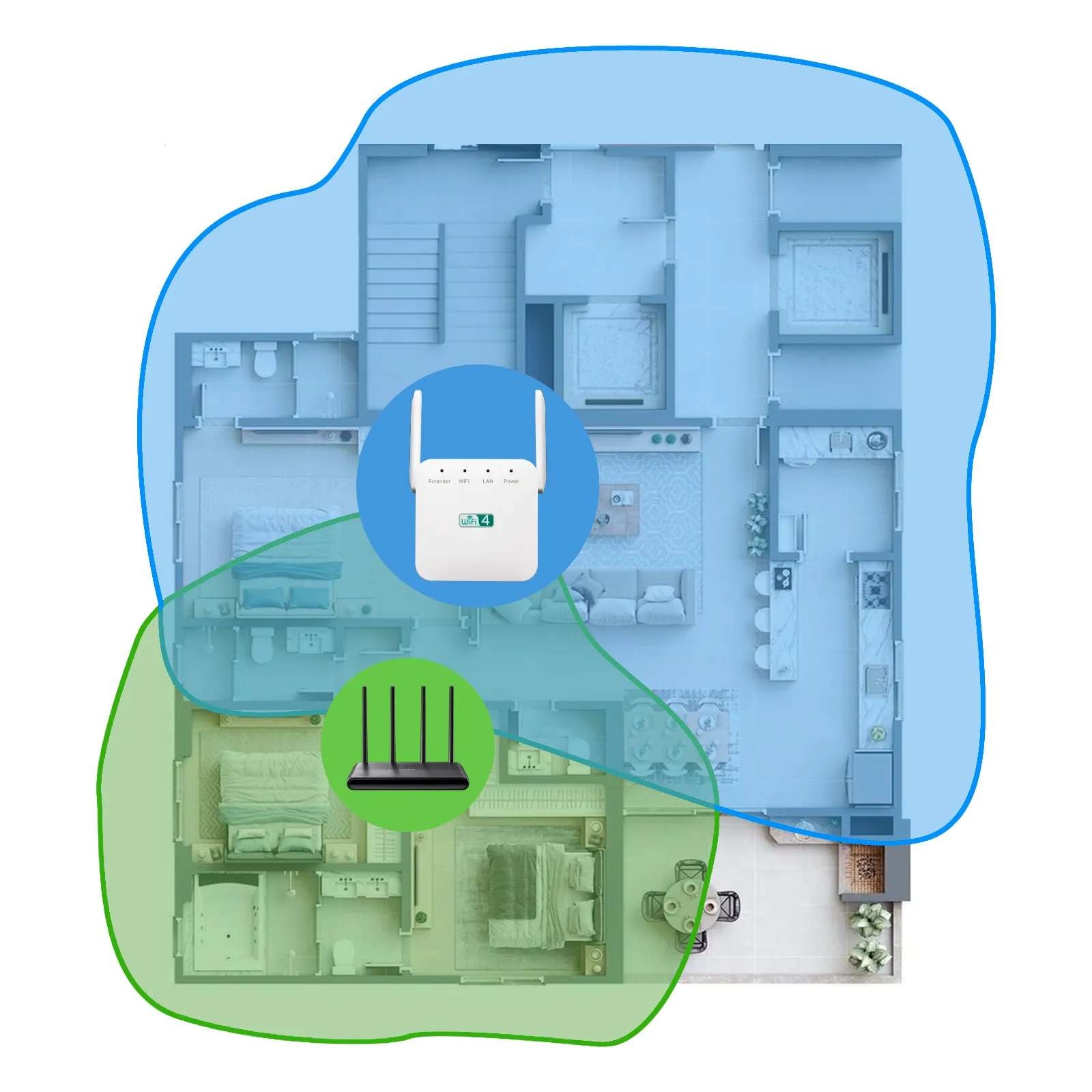 Tack vare högpenetrerande dubbelantenn-teknik tar sig Vassco-förlängaren enkelt igenom tjocka väggar och golv i ditt hem, vilket effektivt förhindrar signalförsämring. Nu kan du njuta av ett stabilt och starkt nätverk i ditt sovrum, kök eller till och med i källaren, vilket skapar äkta helhetstäckning i hemmet utan döda zoner.